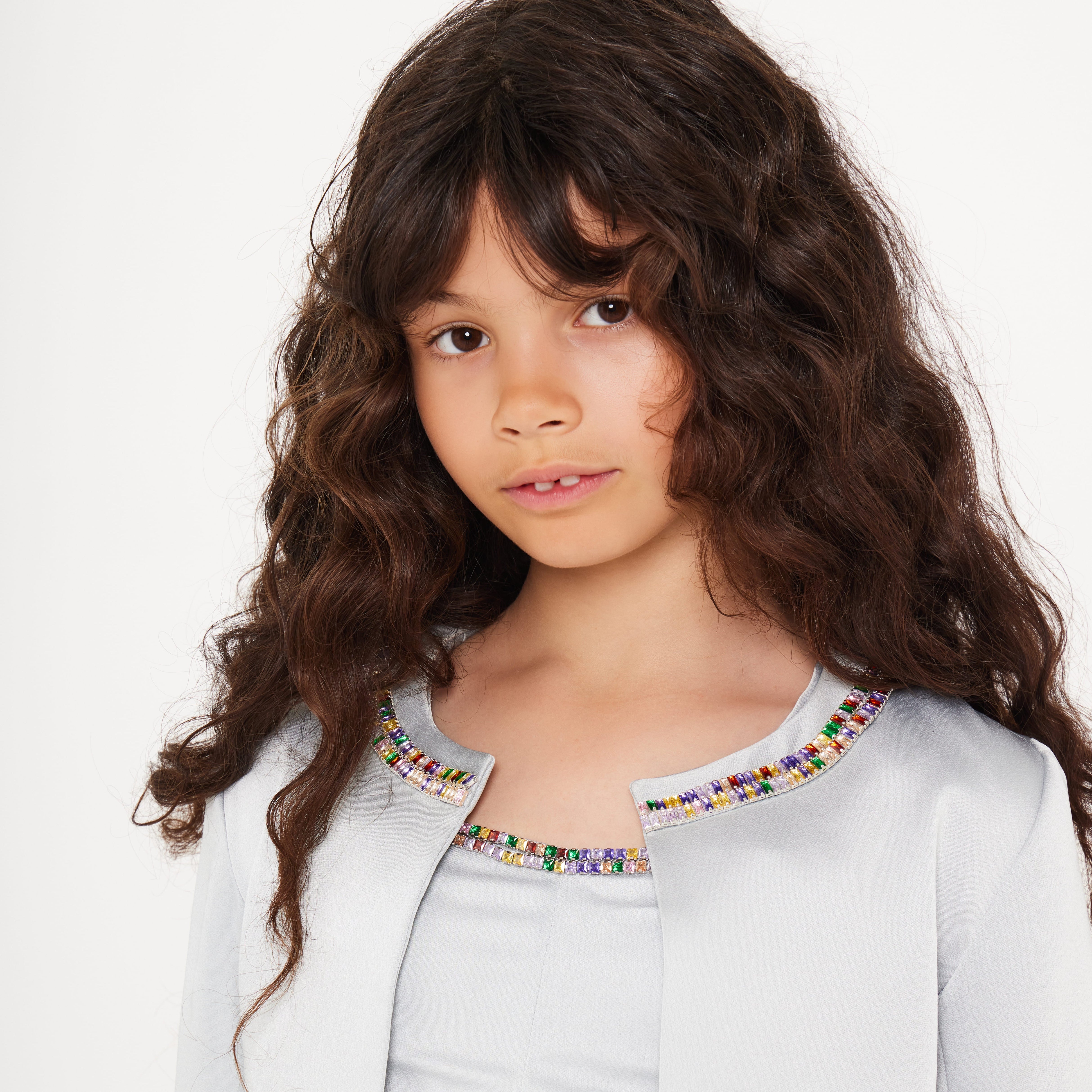 Women’s Rhinestone Jacket- Vanilla White Satin