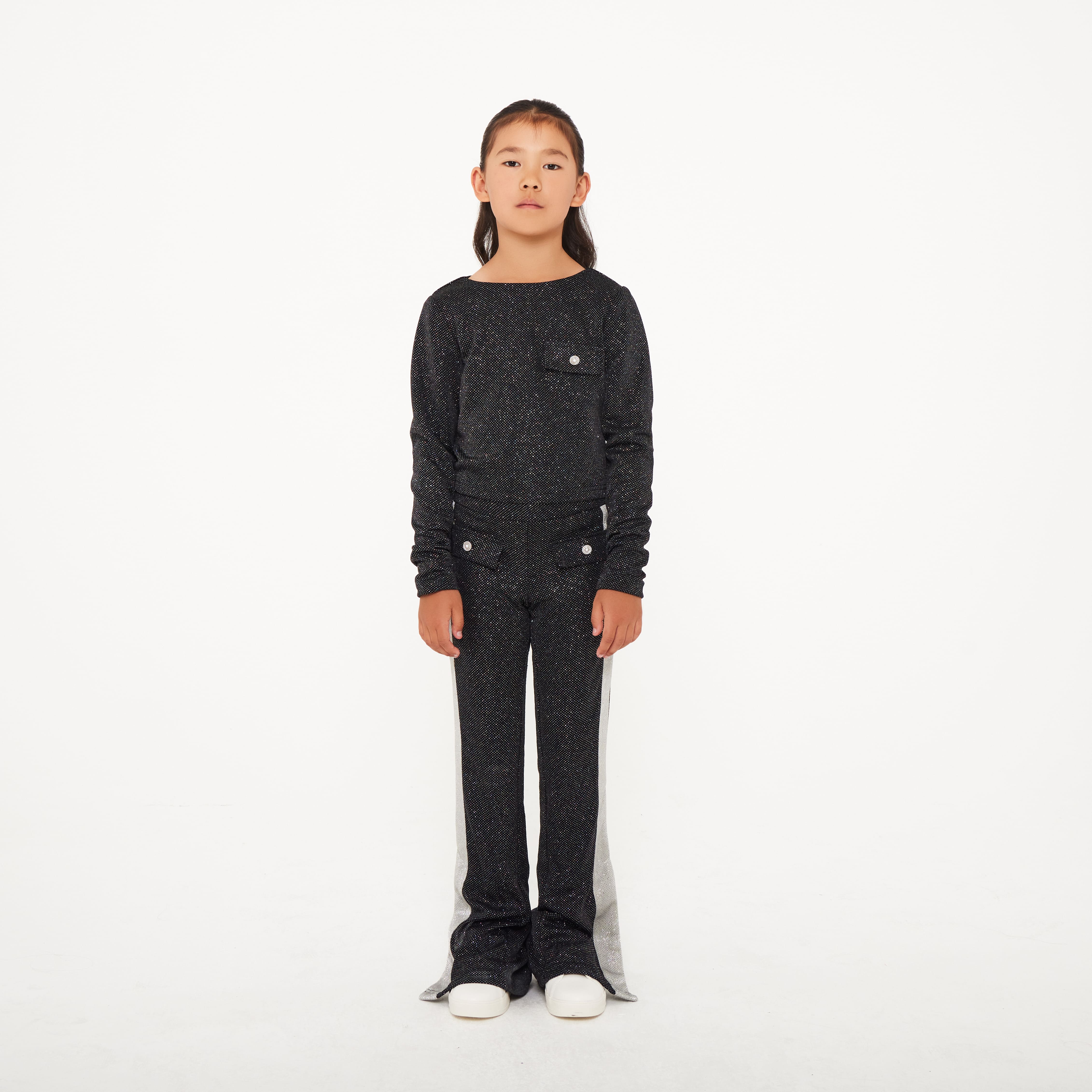 Jersey Sequin Pants with Button Detail- Panther Black SS